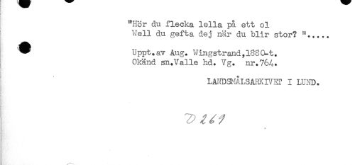 //// "Hor du flecka leila på ett ol //// Well du gefta dej när du blir stor? //// Uppt.av Åug. Wingstrandyl88G-t. //// Okänd sn.Valle hd. Vg. nr.764. //// LMmadLSARKIVEr I LUfrn. //// - //// ^ ^ / / //// ^ ** ////