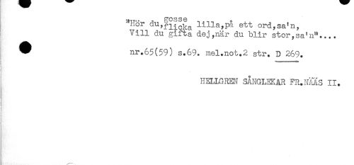 //// HIT** -s SS- . ^ ^ o //// nor dUy^^ lilla,pa ett ord,sa^n, //// Vill du gifta dej,när du blir stor,sa'n".... //// ^ nr.65(59) s.69. mel.not.2 str. D 269. //// HELLGRHJ SÅNGLEKAR FR.NMS II. //// i //// i //// j ////