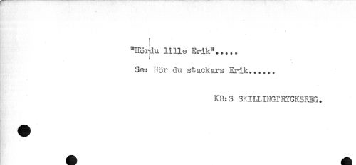 //// - //// ! //// "Hördu lille Erik"..... //// - //// i //// * //// Se: Hör du stackars Erik...... //// KB:S SKILLINGTRYCKSREG. //// . ////