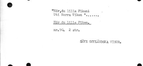 //// "Hör,du lilla FikenL //// Uti Norra Viken "....... //// Hör du lilla Fiken. //// nr. 90. 2 str. //// SÄVE GOTLANDSKA VISOR. ////
