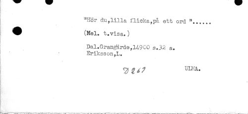//// '"Hör du,lilla flicka,på ett ord //// ^ (Mel. t.visa.) //// Dal.Grangärde,149CO s.32 a. //// Eriksson,L. //// ^^^ ULMA. ////