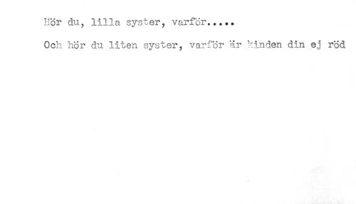 //// Hör du, lilla syster, varför..... //// Och hor du liten syster, varför är kinden din ej röd ////