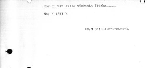 //// Hör du min lilla täckaste flicka..... //// Se: N 1811 b //// B*.' //// KB:S SKILLINGT RYCKSREG. //// , - //// _ ^^^^^ - ////