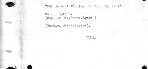 //// "Hör du M^ri får jag fri till dej san." //// Dal. y 169:9 d. //// (Dep. avDal.Fornm.fqren.) //// . '"KE*!"* * ' //// r" //// t- Ii iu J. //// (Enstaka kärleksvisor). ////