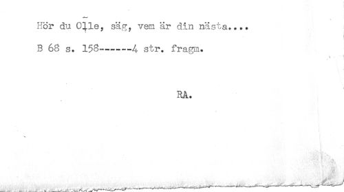 //// Hor du O^le, säg, vem är din nästa.... //// j //// B 68 s. 158------4 str. fråga. //// t . " ! //// RÅ. ////