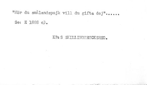 //// "Hor du smålandspojk vill du gifta dej'*...... //// Se: E 1883 c3. //// KB: S 3KILUNGTRYCKSRBG. //// jn-^i ^ .... - ..........- ////
