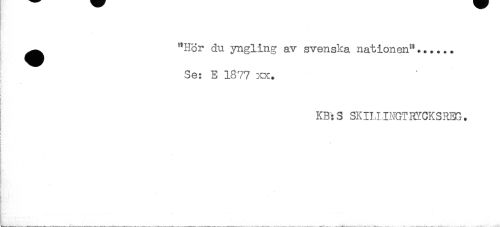 //// ^ "Hgr du yngling av svenska nationen"...... //// Se: E 1877 xx. //// ! //// i //// ! //// i //// KB:S SKIHINGTBYCKSREG. //// ! //// I //// ! //// ! , //// ! ////