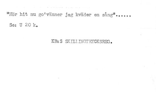 //// "Hör hit nu go'vänner jag kväder en sång"...... //// Se: U 20 k. //// KB:S SKILLINGTRYCKSRBS. ////
