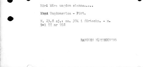 //// Hör! kära ungdom stanna..... //// i //// t; //// I Xhg^ Ungdomsvisa. - Port.. //// , ^^ N. 23.8 sj.^ no. 374 i förteckn. - m. //// } Del II nr 918 //// ! //// i //// ! //// RANCKEN F^HTECKNYNG //// ! //// ! //// r //// i //// : //// r * ////