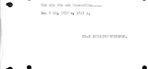//// Hör min v'in och tus en sköna...... //// Se: N 61^ 1817 e; 1833 g, //// KB:S SKILLINGTRYCKSREG. //// ^tåH! Hk ////