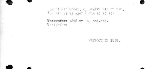 //// Hor ni min moder, o. skaffa mig nu man, //// For min aj aj a jer min aj aj aj. //// 1853 nr 16, mel.not. //// West^othen //// * //// WXSTGCTHEH 1856. //// t' //// . ////