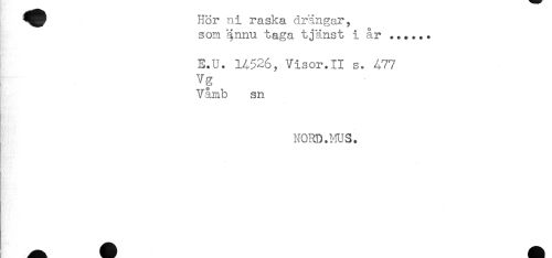 //// ^^^ Hör ni raska drängar, //// som §nnu taga tjänst i år ...... //// E.U. H526, Visor.II s. 477 //// Vg //// Våmb sn //// NORD.MUS. ////