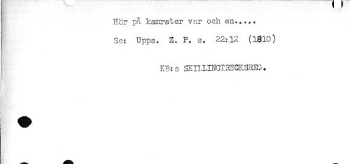 //// I Hor på kamrater var och en..... //// Se: Upps. Z. P. s. 22:12 (1^10) //// . //// [ KB:s SKILLINGT.RYCKSREC. //// - //// i //// % //// < ////