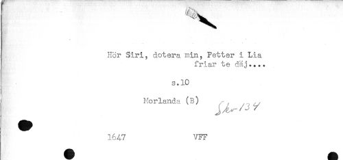 //// I. ^ //// a. //// Hor Siri, dotera min, Petter i Lia //// friar te däj.... //// s.10 //// Morland,, (B) ^^ //// ^ 1647 VFF ////