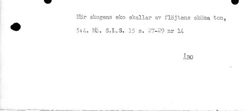 //// Hor skogens eko skallar av flöjtens sköna ton, //// ^ 5:4. M3. S.L.S. 15 s. 27-29 nr 14 //// ÅBO //// 1 ////