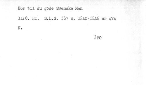 //// < //// Hor til du gode Swenske Man //// 11:8. Hl. S.L.S. 367 s. 1240-1246 nr 474 //// N. //// ÅBO ////