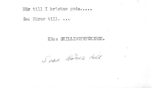 //// Hör till I kristne goda..... //// Se: Hörer till.. ... //// KB:s ^ILLINGTKfCKSRm. //// f ////