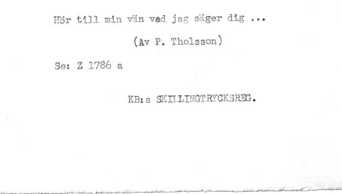 //// Hor till min vän vad jag säger dig ... //// (åv P. Tholsson) //// Se: Z 1786 a //// KB:s SKH,HNGTRYGK3R3G. ////