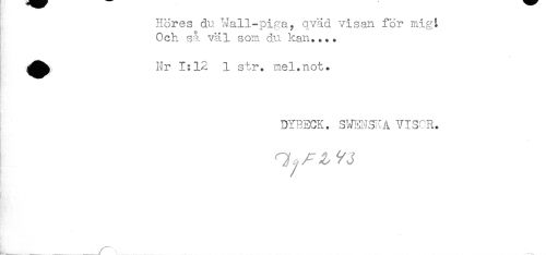 //// Höres du Nall-piga, qväd visan för migi //// Och så väl som du kan.... //// Hr 1:12 1 str. mel.not* //// DYBECK. SWBNSKA VISCR. //// C //// : ....... -............... ..../ ////