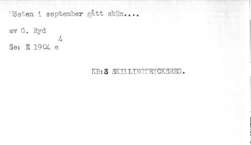 //// Hösten i september gatt skön.... //// av G. Ryd //// Se: E 19% e //// t //// KB: S 3KII.LIN0T RYCKSREG. //// T //// j ////