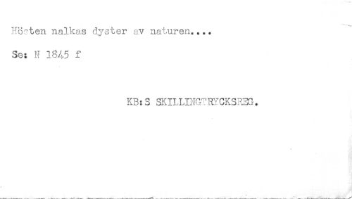 //// Hö-ten nalkas dyster av naturen.... //// Se: N 1845 f //// KB:S SKILUNG^RYCKSRin. //// _ _ _ ' ____^r-.-S.''- ^ ////