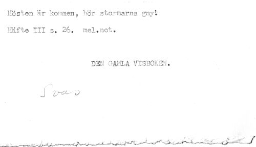 //// Hösten ar kommen, hör stormarna .gnyt //// Häfte III s. 26. mel.not. //// DM GAMLA VISBOKEN. //// J * ^ ////
