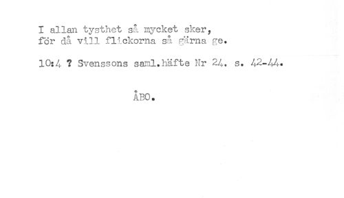 //// I allan tysthet så mycket sker, //// för då vill flickorna så gärna ge. //// 10:4 ? Svenssons saml.häfte Nr 24. s. 42-44-. //// ÅBO. ////