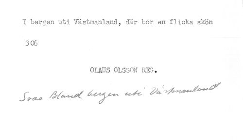 //// I bergen uti Västmanland, där bor en flicka skön //// 306 //// OLAUS OLSSON RBH. ////