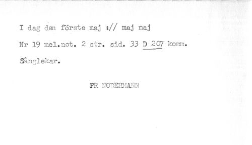 //// I dag den förste maj :// maj maj //// Nr 19 mel.not. 2 str. sid. 33 D JW komm. //// Sånglekar. //// PR NODERHANN ////