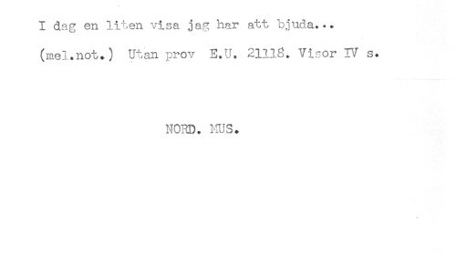 //// I dag en liten visa jag har att bjuda... //// (mel.not.) Utan prov E.U. 21118. Visor IV s. //// NORD. MUS. //// * ////