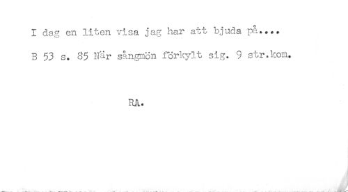//// I dag en liten visa jag har att bjuda på.... //// B 53 s. 85 När sångmön förkylt sig. 9 str.kon. //// RÅ. //// ... ////