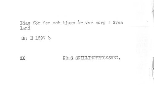//// Idag for fen och tjugo år var sorg i Svea //// land //// E 1897 b //// KB:S SKILLIiiGTRYCKSRECr. //// i ////
