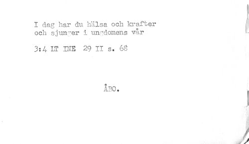 //// I dag har du hälsa och krafter //// o //// och sjunger i ungdomens var //// 3:4 LT INE 29 II s. 68 //// ÅBO. ////