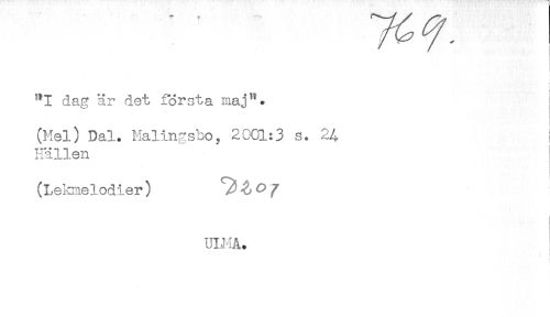 //// i //// dag är det första maj^. //// (Mel) Dal. Malingsbo, 2001:3 s. 24 i //// Hällen //// (Lekmelodier) //// UHIÅ. //// * ////
