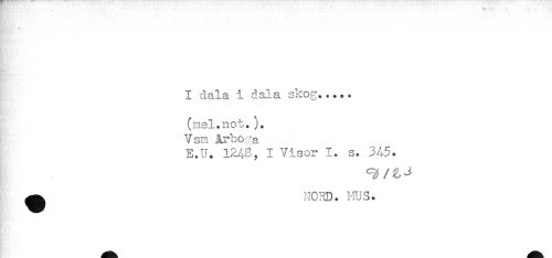 //// I dala i dala skog..... //// (mel.not. //// Vsm Arboga //// E.U. 1248, I Visor 1. s. 345. //// ^ NC3D. nus. //// KM.--' ////