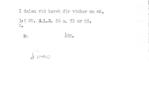 //// I dalen vid havet där vinkar en mö, //// f //// t //// 1:5 HU. S.L.S. 50 s. 73 nr 65. //// N. //// gx ÅBO. //// i //// ! //// i ! ////