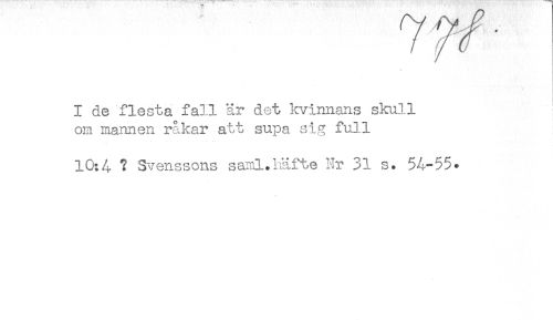 //// I de flesta fall är det kvinnans skull //// om mannen rakar att supa sig full //// 10:4 ? Svenssons samlJriäfte Nr 31 s. 54-55* ////