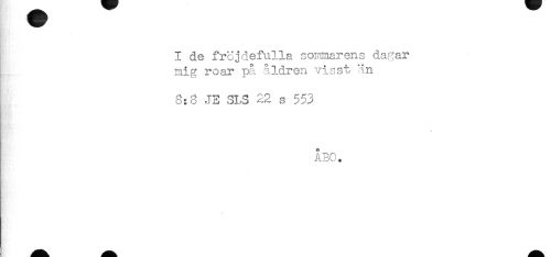 //// I de fröjdefulla sorrmarens dagar //// mig roar på åldron visst än //// 8:8 JE 3LS 22 s 553 //// ÅBO. ////