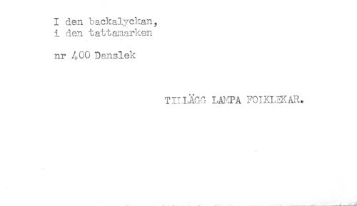 //// I den backalyckan, //// i den tattamarken //// nr 400 Danslek //// T 11.1,ÄGG I<AKPA FCIKLN<AR. ////