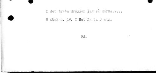 //// K-' //// I det tysta dröj jer jag så gärna..... //// W B 46:2 s. 19. I Bet Tysta 3 str. //// ) //// RA. //// j //// ; //// _ '"*+' ' - '' - _ ___ ////