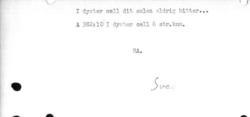 //// ! I dyster cell dit solen aldrig hittar... //// .sw //// A 382:10 I dyster cell 6 str.kon. //// RA. //// . ////