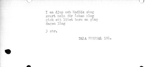 //// I en djup och ändlös skog //// svart moln där åskan slog //// gick ett litet barn en gång //// dagen lång //// 3 str. //// DAI.å FORNSAL 1-36. ////