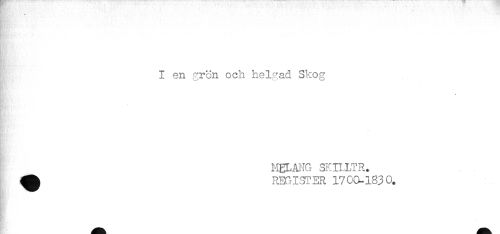 //// I en grön och helgad Skog //// - //// . //// HELANG SKULTR. //// ^ REGISTER 17 CO-1830. //// Kr ////