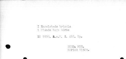 //// I Engelstads kringla //// i Ni ende kaga home //// EU 7899. 3.o.M. S. A62. Up. //// ^ NORD; HUS. //// KOPIOR VISOR. ////