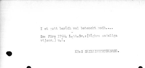 //// I et ^ott berådh vel betenckt nodh.... //// Se: Före 1700. I^tt.Sv.:(Nagkra andeliga. //// vijsor. ) u.å.. //// ^ KB:S 3KILIINGTRYCK3REG. ////