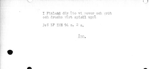 //// H - ('t'*.'*")'*' ) //// I Finland där åto vi rovor och gröt //// och drucko vårt spisel upnå //// 3:8 1? IHE 94 s. 2 a. //// ÅBO. //// * //// * ////