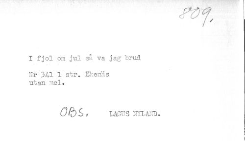 //// I fjol om jul så va jag brud //// Nr 341 1 str, Ekenäs //// utan mej.. //// y LAGUS ////