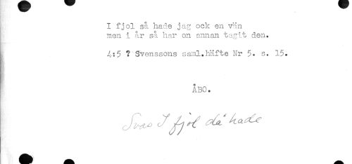 //// I fjol så hade jag ock en vän //// men i år så har cn annan tagit den. //// Å:5 ? Svenssons saml.häfte Nr 5. s. 15. //// ÅBO. ////