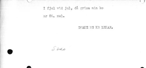 //// I fjol vid jul, då grisa min ko //// nr 86. mel. //// - //// DRAKE MS KB LEKAR. //// i ////