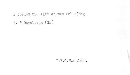 //// " ] //// I fordom tid satt ..en man och sjöng //// s* 5 Degeberga (Sk) //// I.F.G.H.: 4988. ////